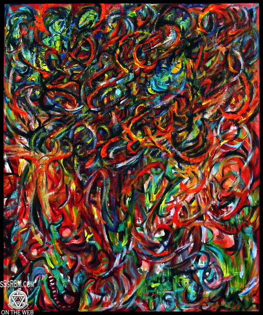 Ourtz Original Canvas Paintings Priced to go at $1,000,000.00 Self Portrait The Blue Wave Eye of The Storm Ra Battles Space Aliens Living Graveyard Thicket C Major The Rapture
